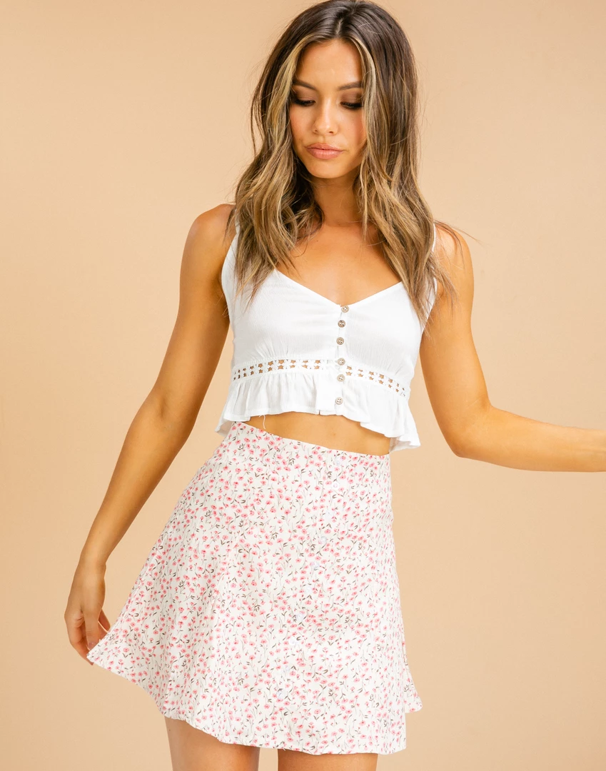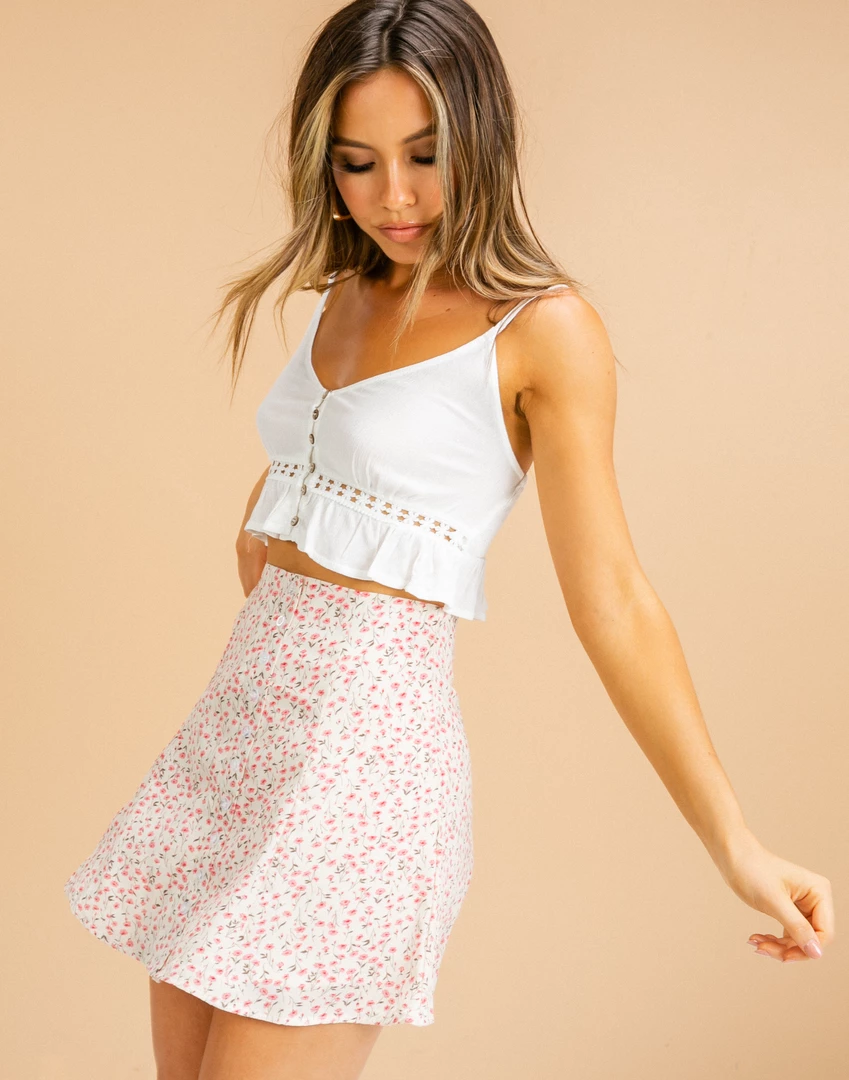 Pink and cream floral mini skirt