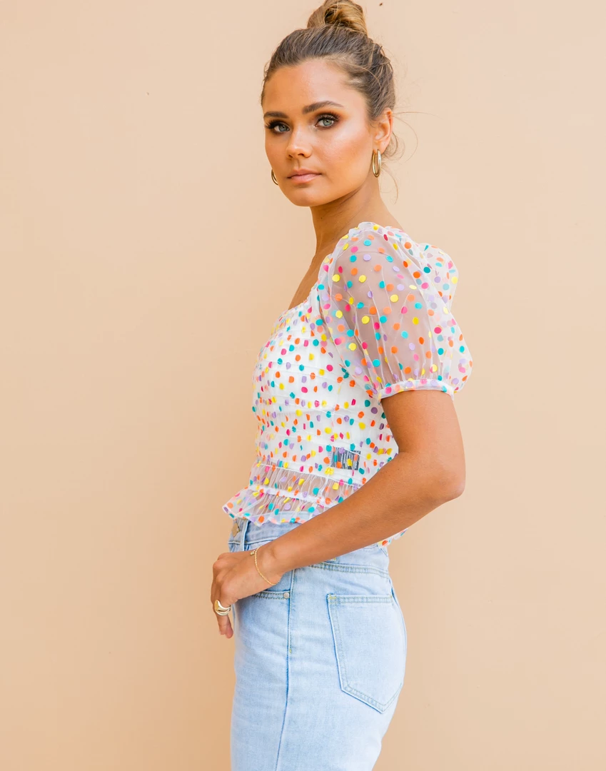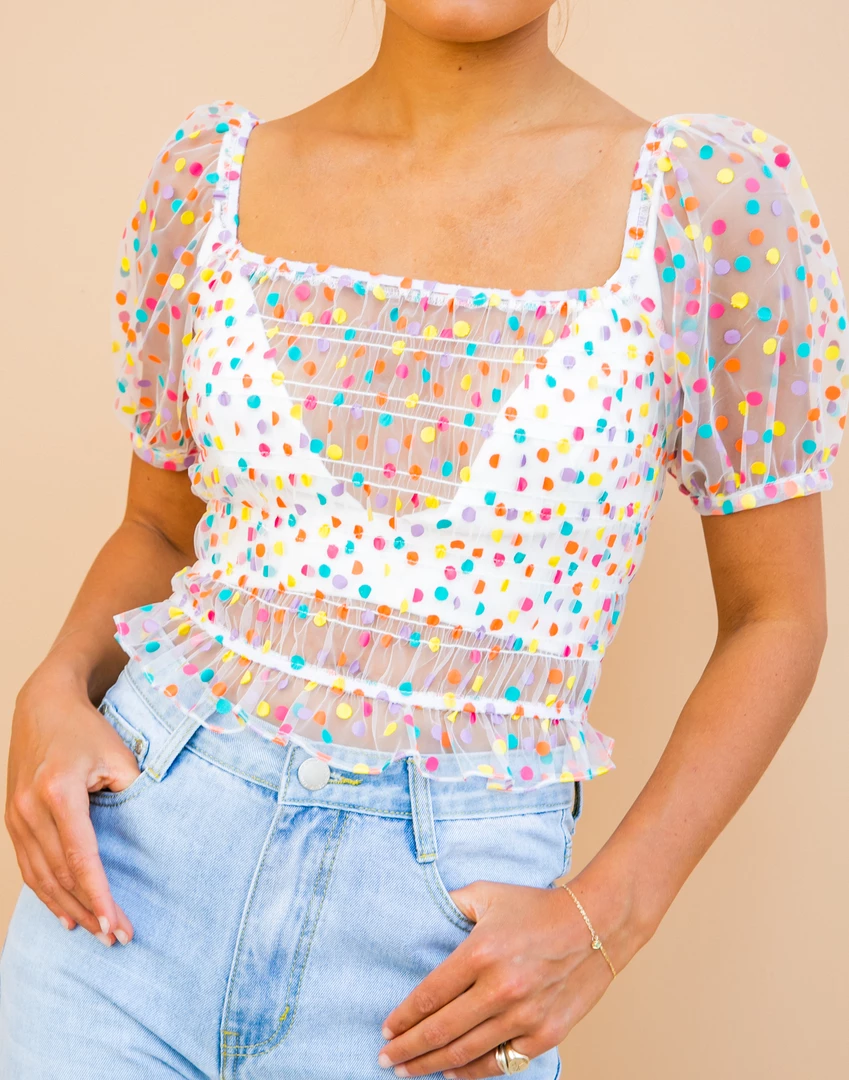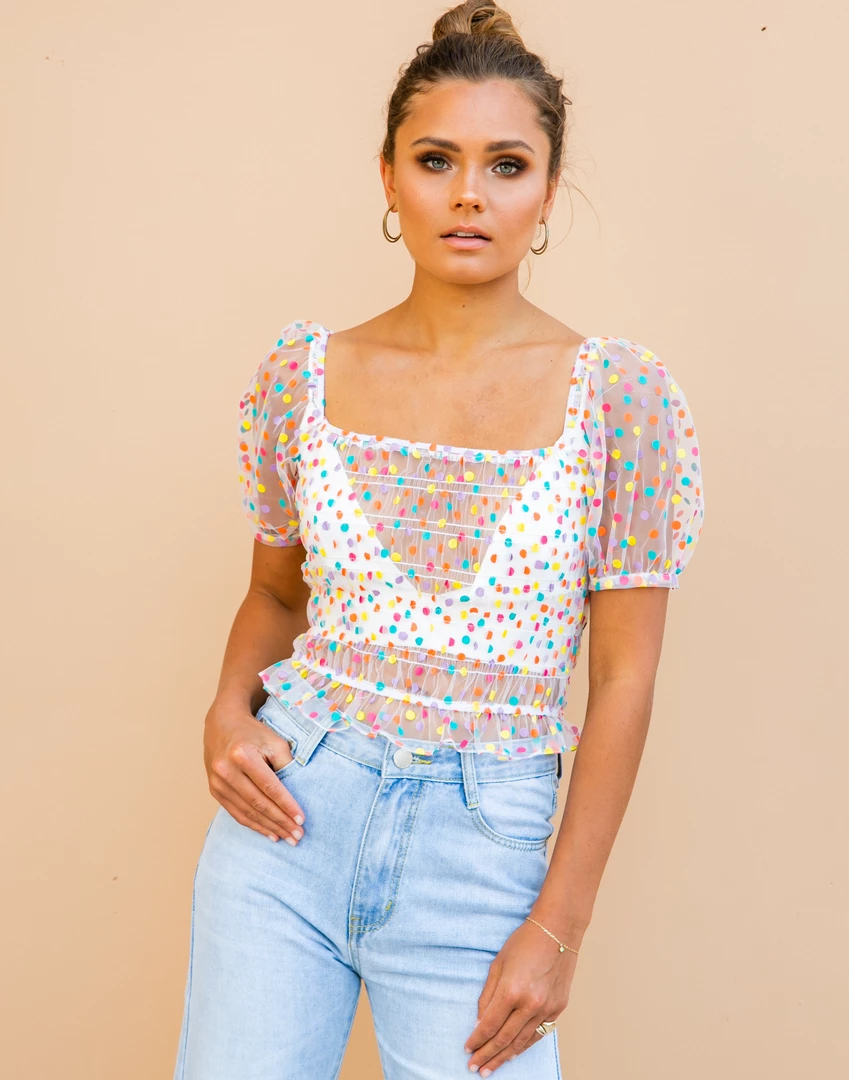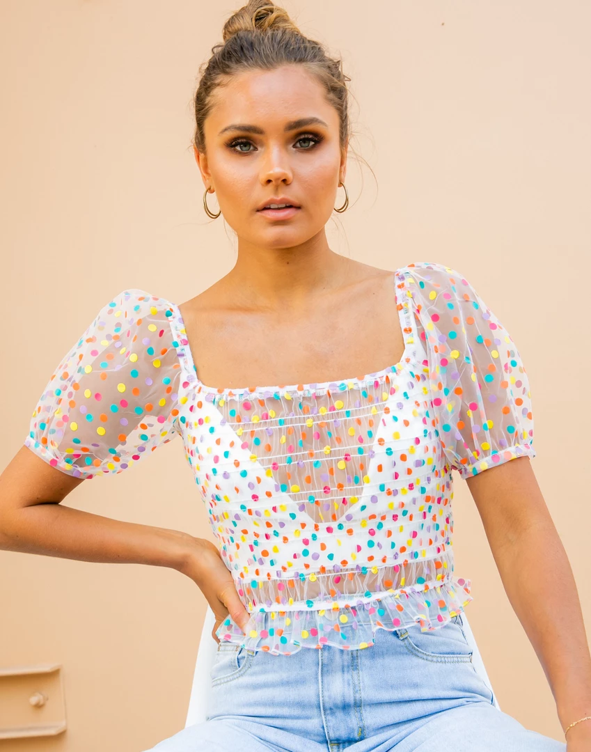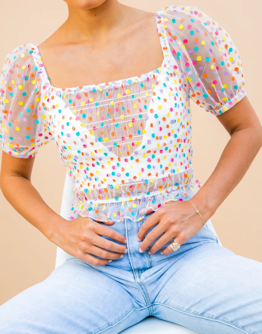 Multicoloured, sheer crop top