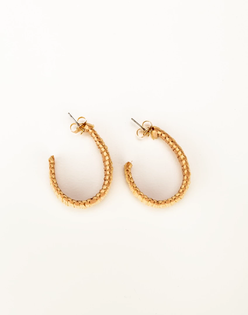 Camel and nude woven, hoop earrings