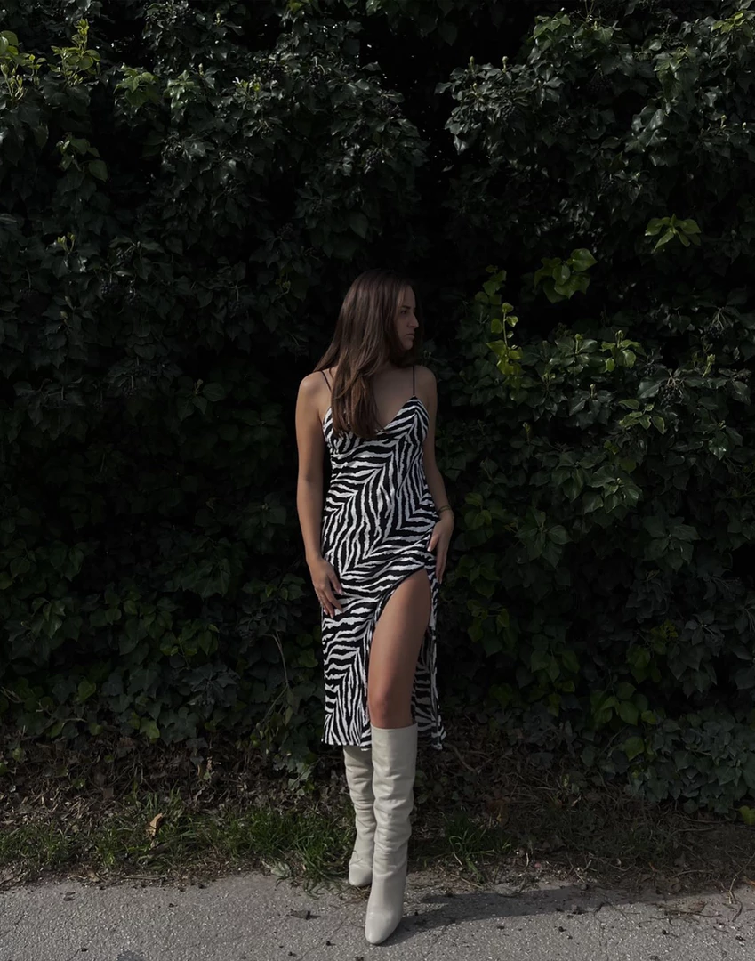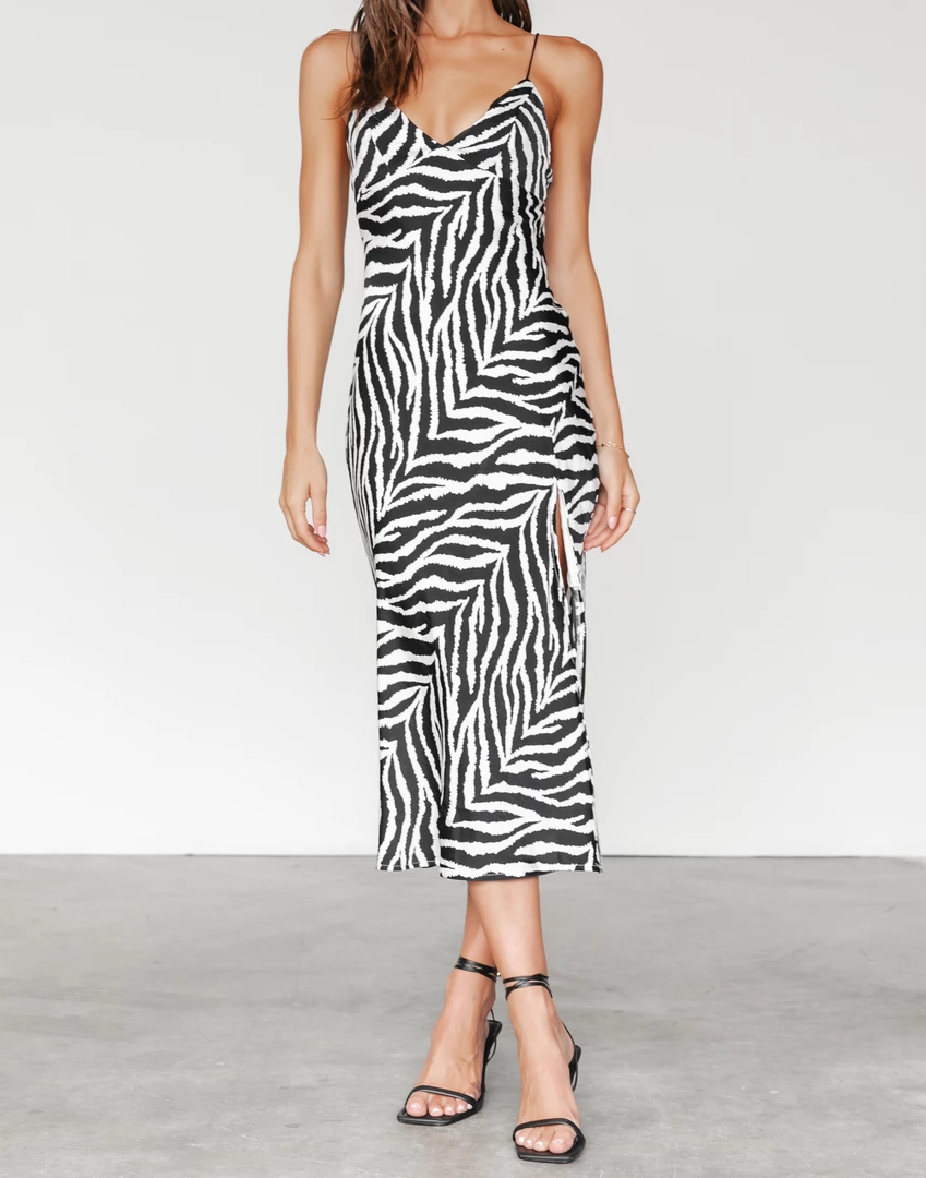SKU: dress-6689229078630 Categories: Clothing, Dresses, Edit, Midi Dresses, Summer Edit Tags: Black and white, COUNT1, Fun, Print, Slip, Summer, Zebra, Zebra dress