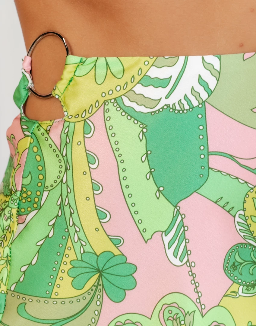 Green multicoloured paisley print mini skirt