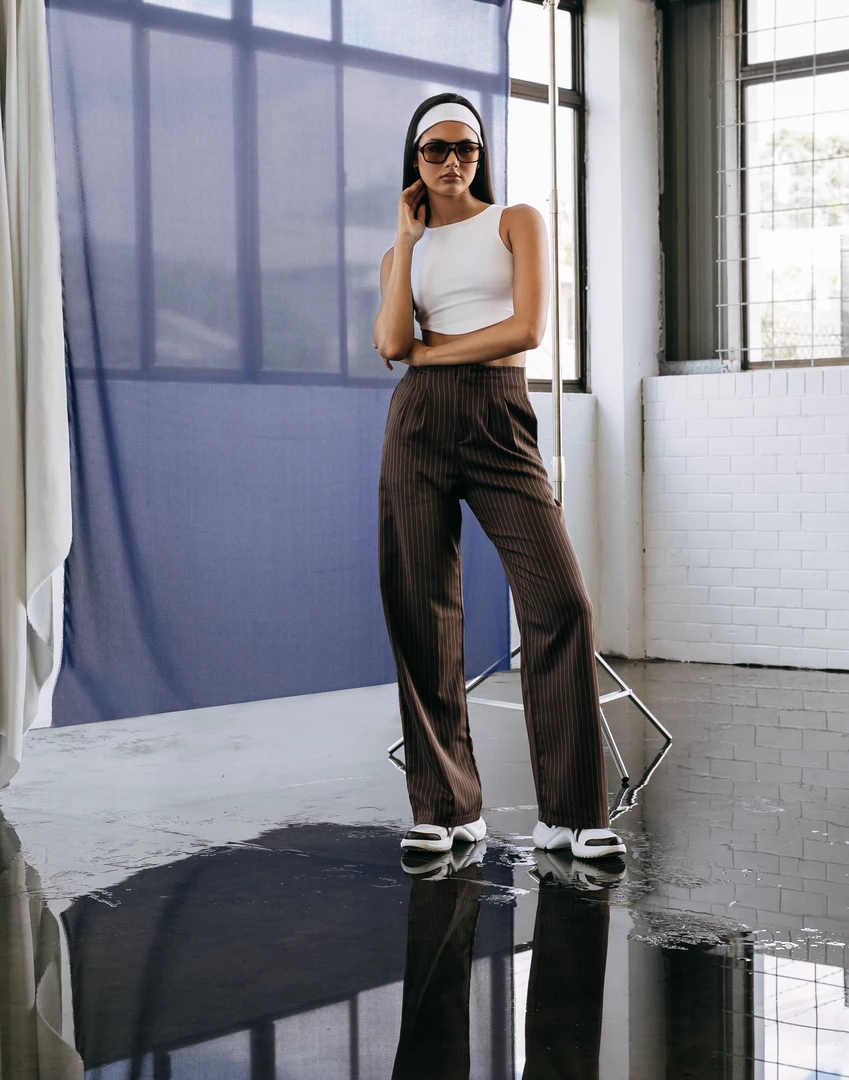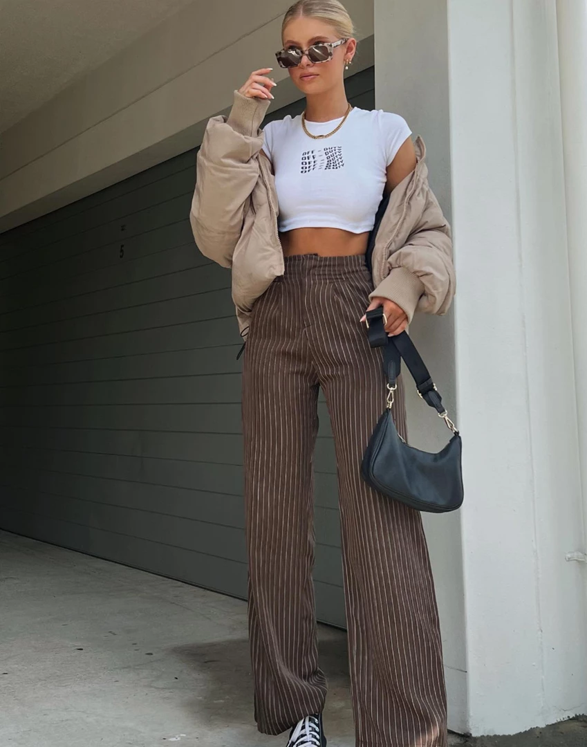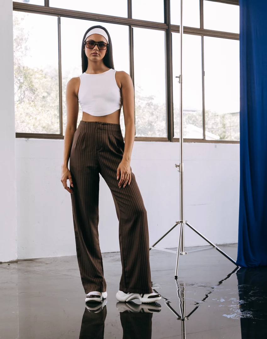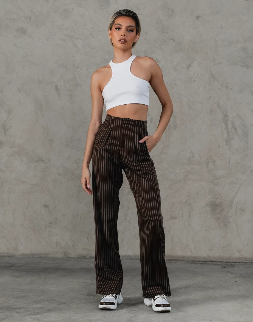 Brown pinstripe pants