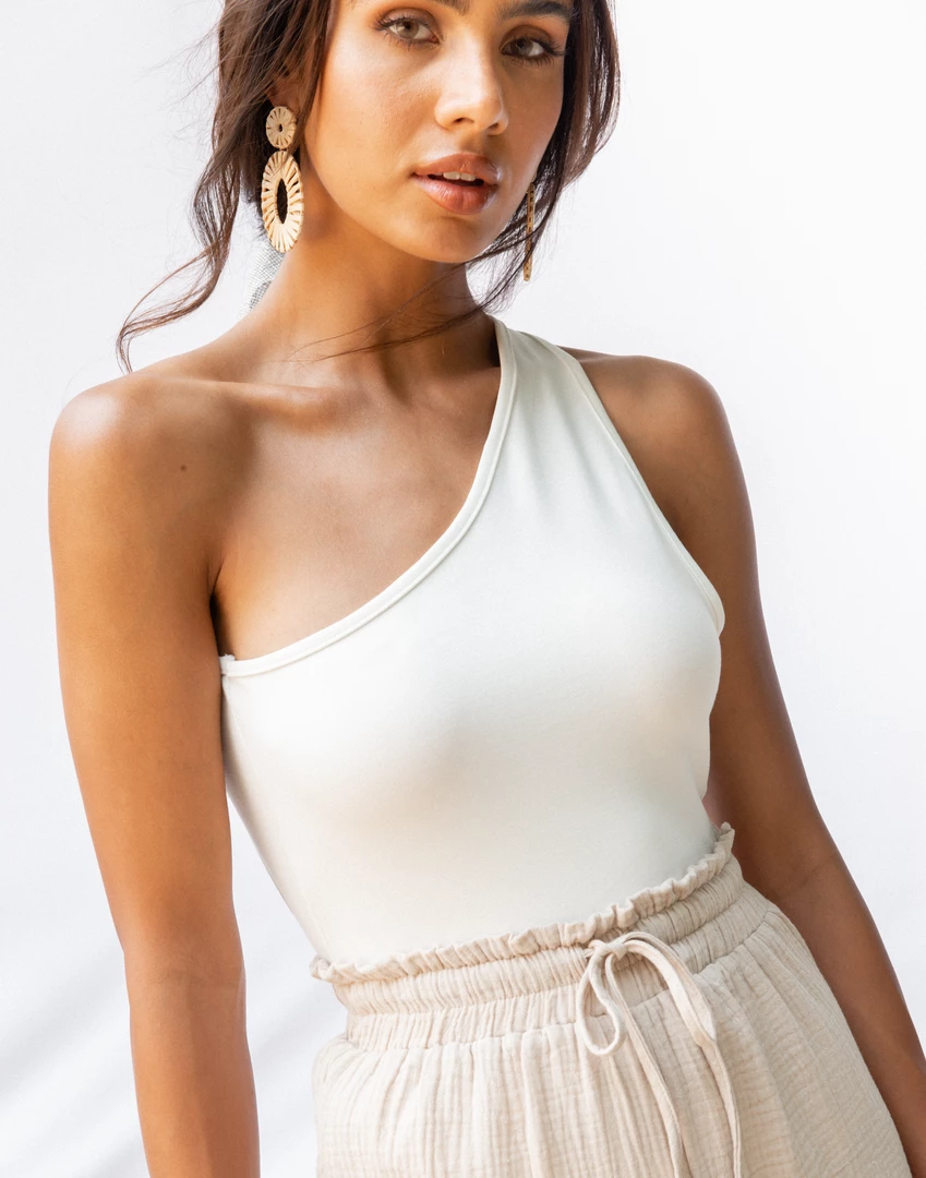 White one-shoulder bodysuit