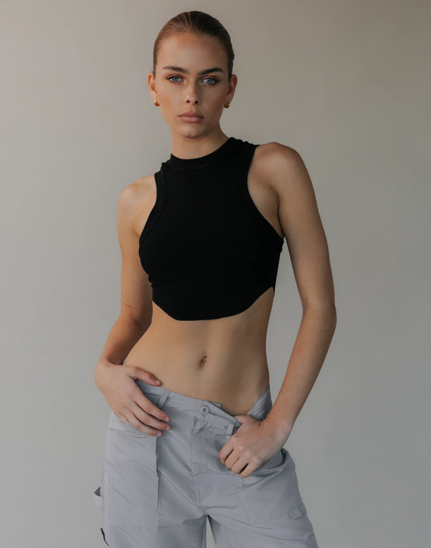 Black ribbed tank top