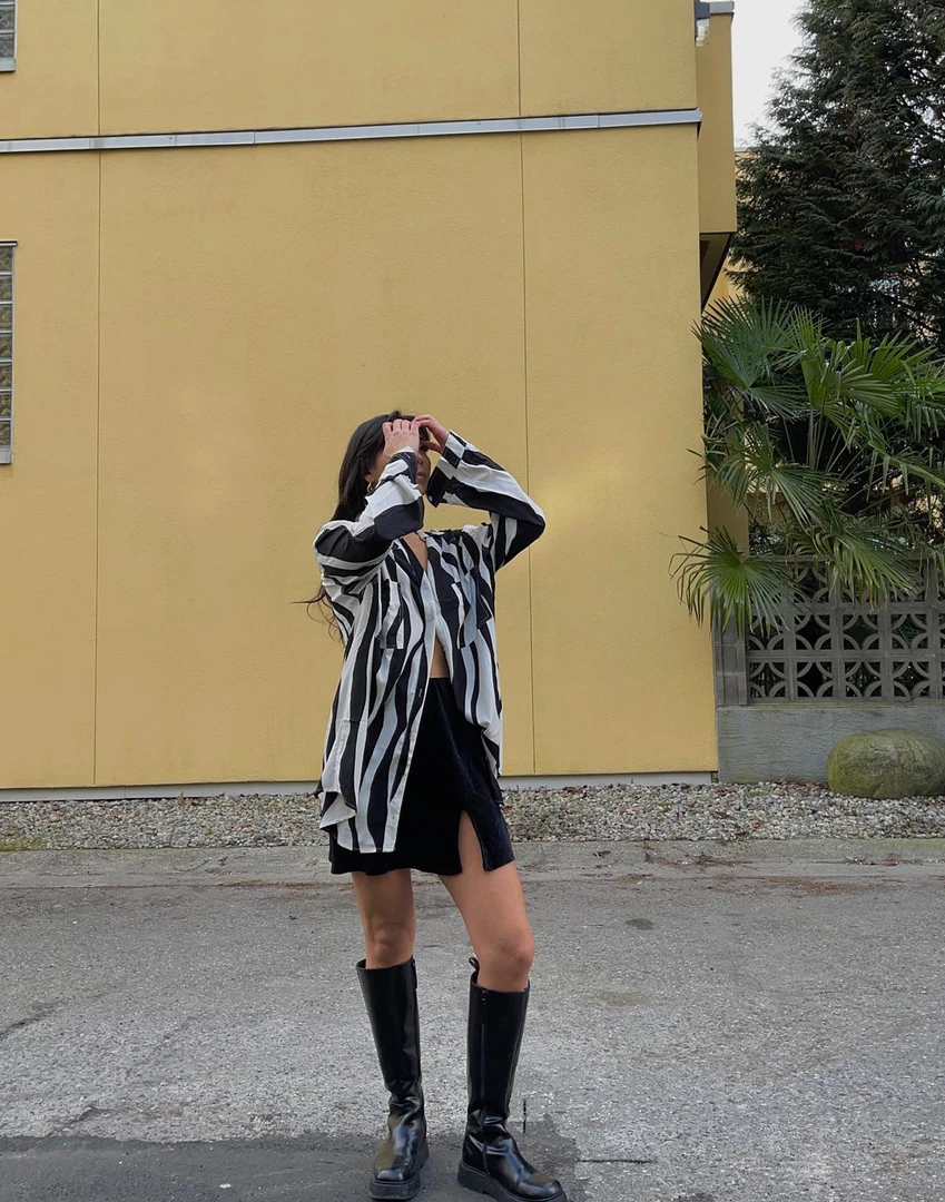 Black and white print oversized shirt