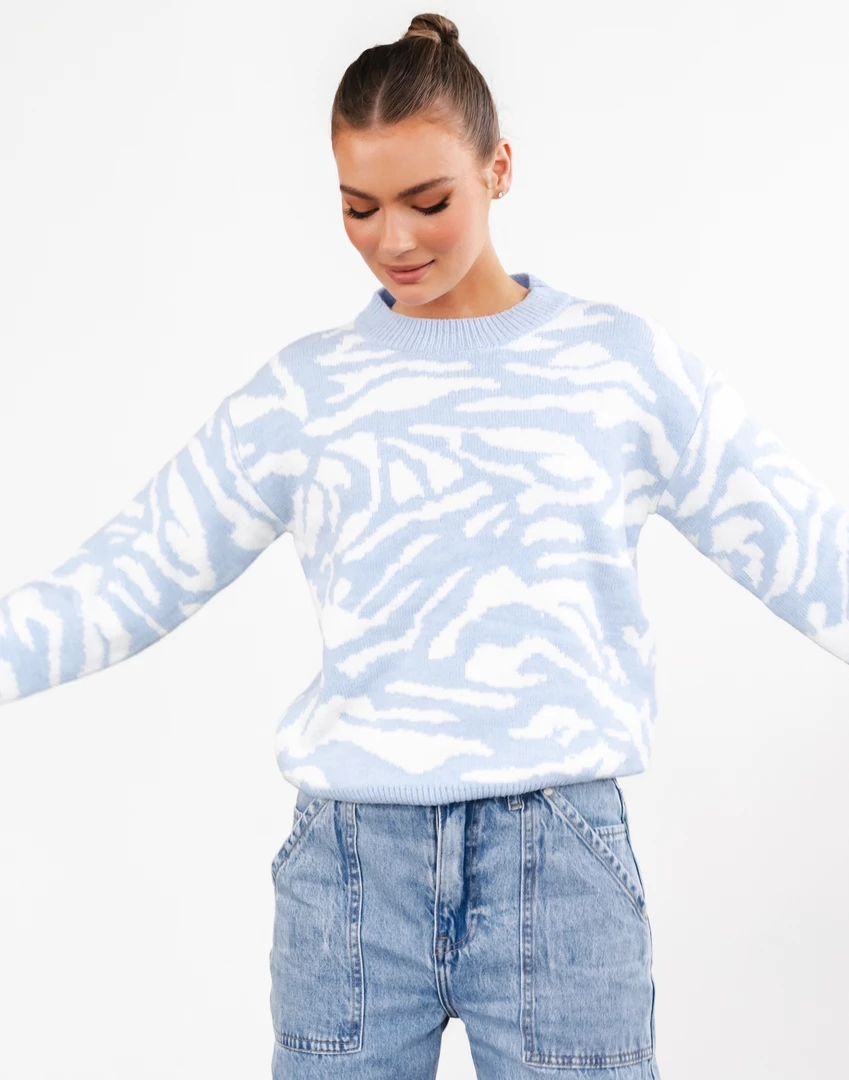 SKU: top-6706414354534 Categories: Brands, CHARCOAL Exclusives, Charcoal Exclusives, Clothing, Edit, Jackets + Outerwear, Jumpers & Cardigans, Jumpers + Cardigans, Knitwear, New Arrivals, Tops, Winter Warmers Tags: Abstract, Baby blue, Blue, Charcoal exclusive, Cream, Knit, Knit wear, Pattern knit