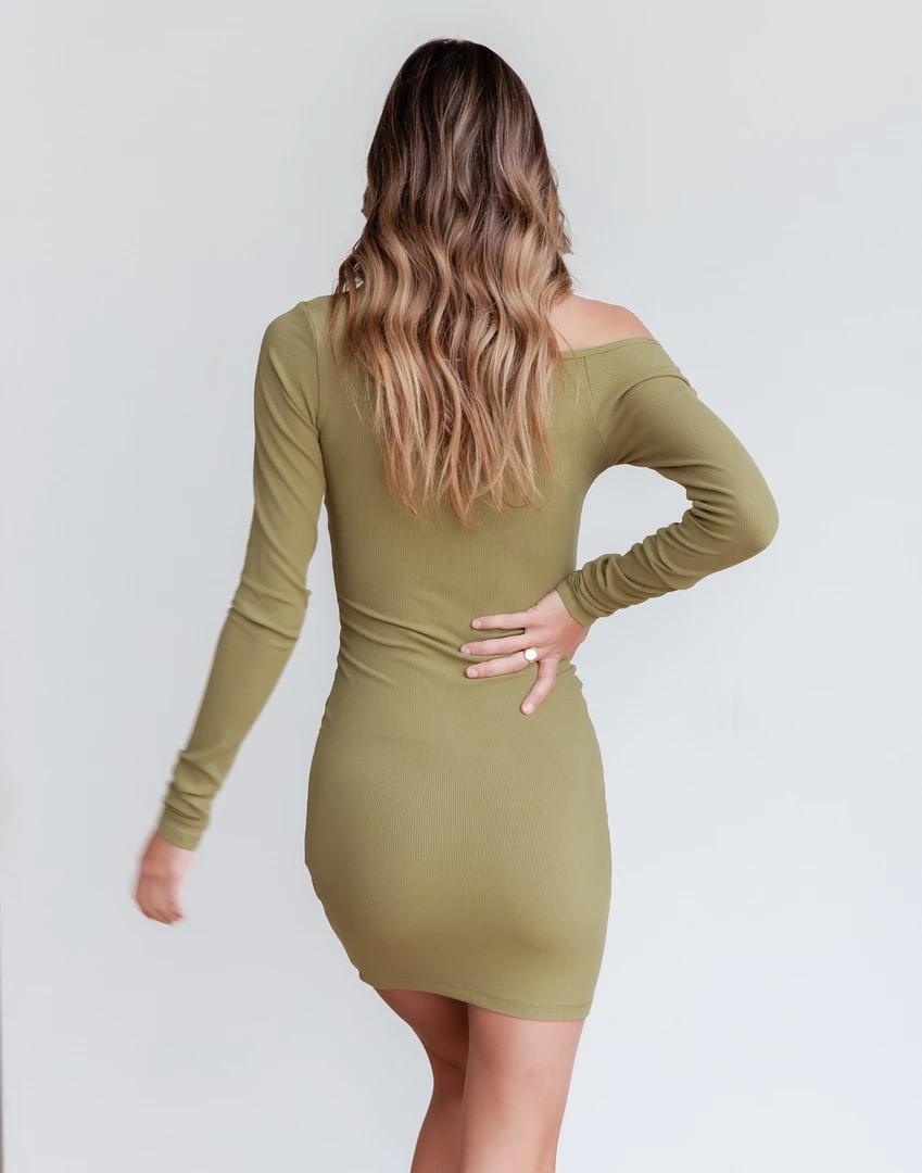 Khaki fitted mini dress