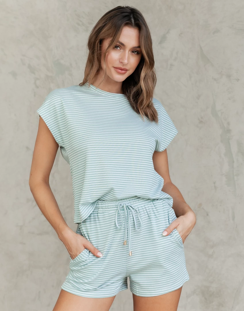 Sage green and white striped tee