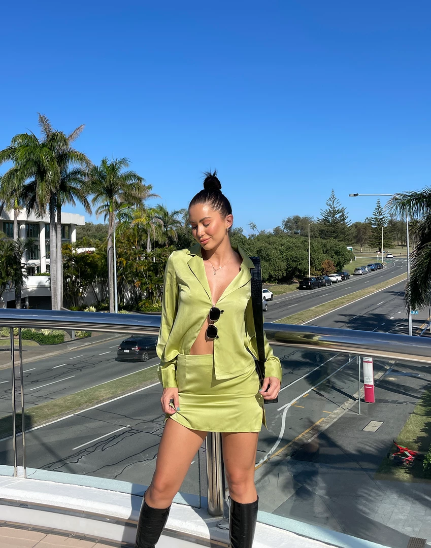 SKU: skirt-6697559883878 Categories: Bold in colour, Bottoms, Clothing, Edit, Going out, Sets + Co-ords, Skirts Tags: _matching-set:joanna-set-olive, Bright, Green, Mini skirt, NA22FEB22, Newbarcode22, Party wear, Skirt