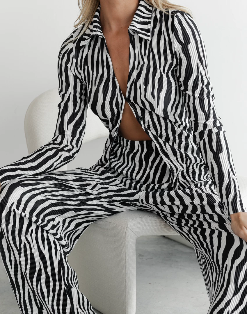 SKU: top-6723365208166 Categories: Clothing, Edit, New Arrivals, Plissé Perfection, Sets + Co-ords, Tops Tags: _matching-set:keesha-set-zebra, Cathlin, Pattern black top, Plisse zebra, Sets, Top, Tops black, Zebra plisse