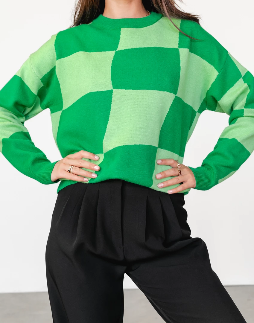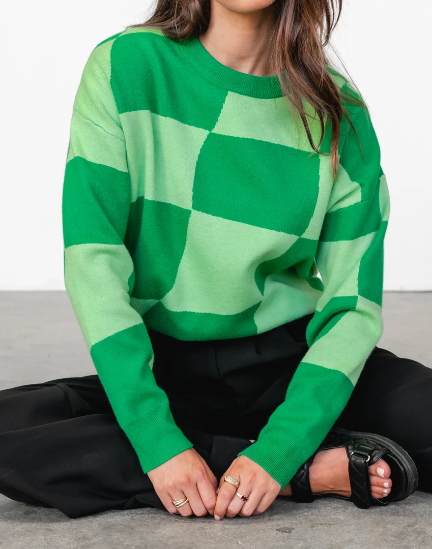 SKU: outerwear-6697559556198 Categories: Bold in colour, Clothing, Edit, Jackets + Outerwear, Jumpers & Cardigans, Jumpers + Cardigans, Knitwear, Tops, Winter Warmers Tags: Bold colour, Bright colours, Green jumper, Green knit, Green pattern, Jumper, New arrivals, Pattern