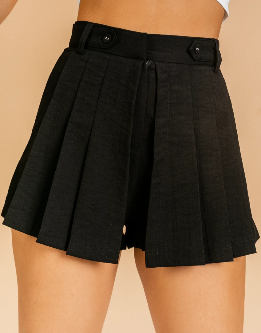 Black pleated shorts
