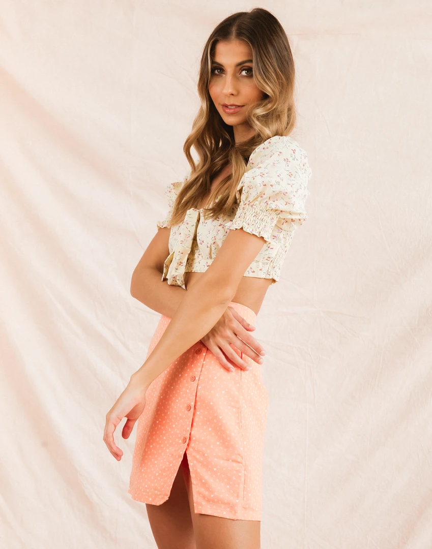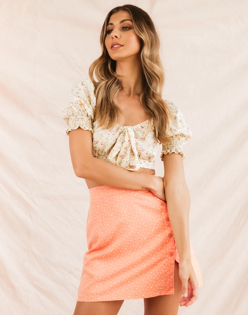 Orange and white heart print mini skirt
