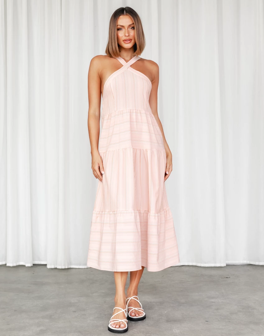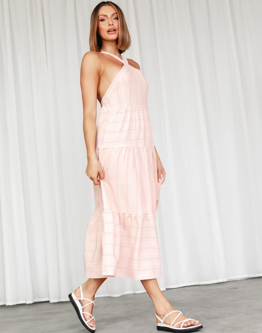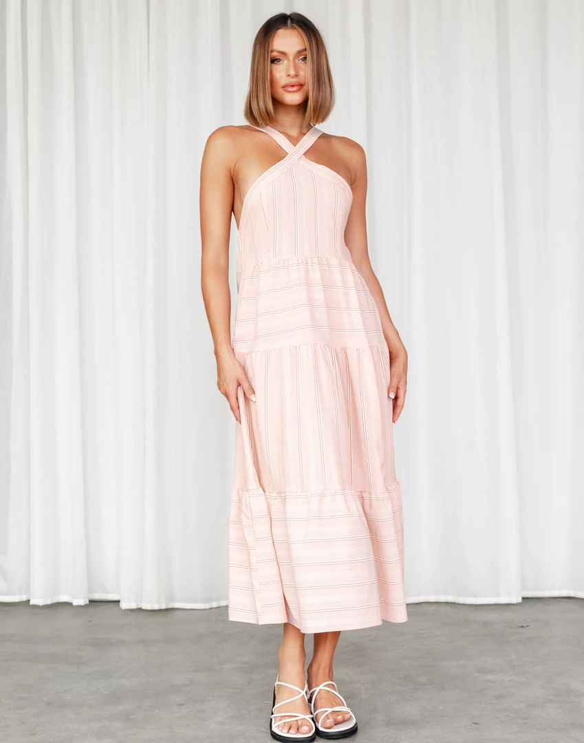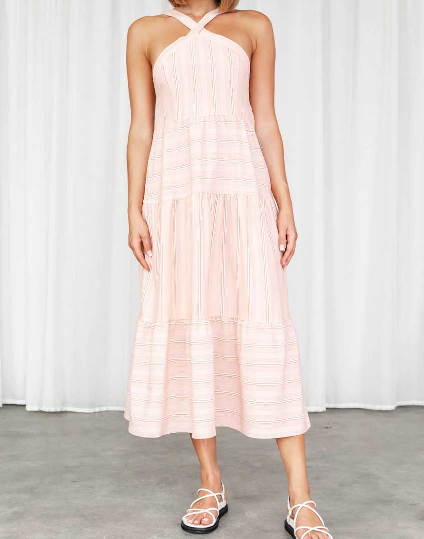 Rust striped midi dress