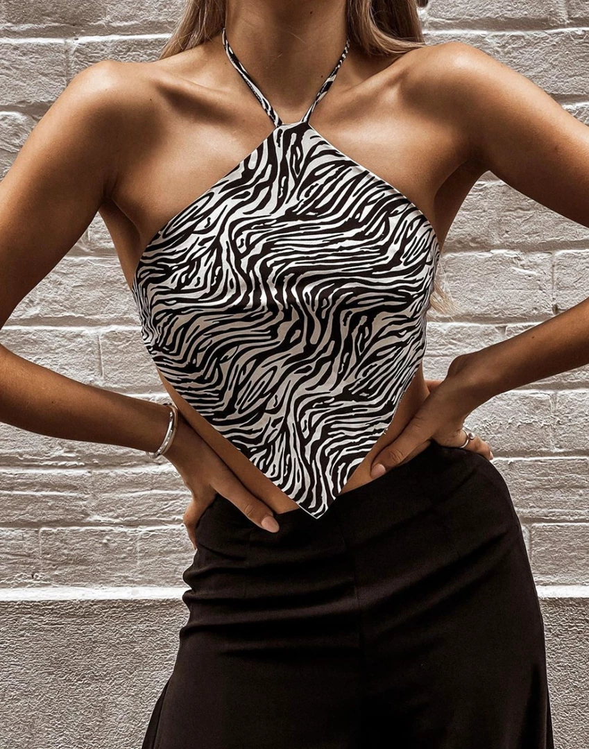 Black and cream zebra halter top