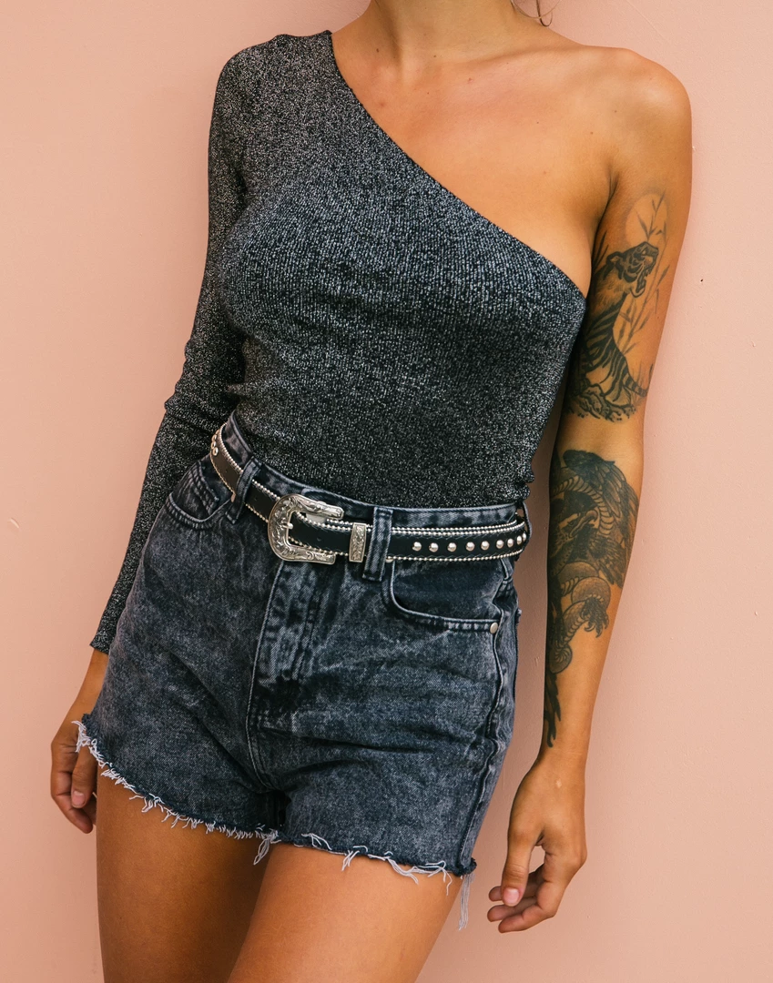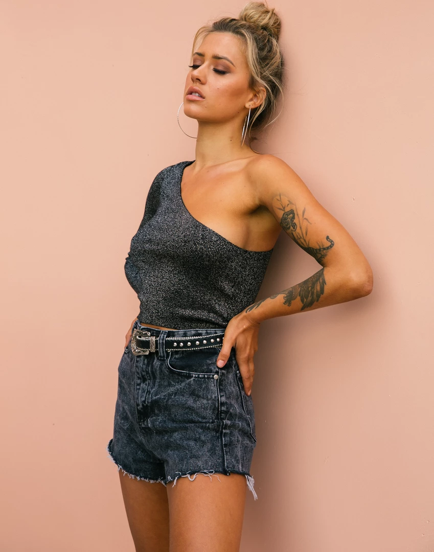 Black shimmer crop top