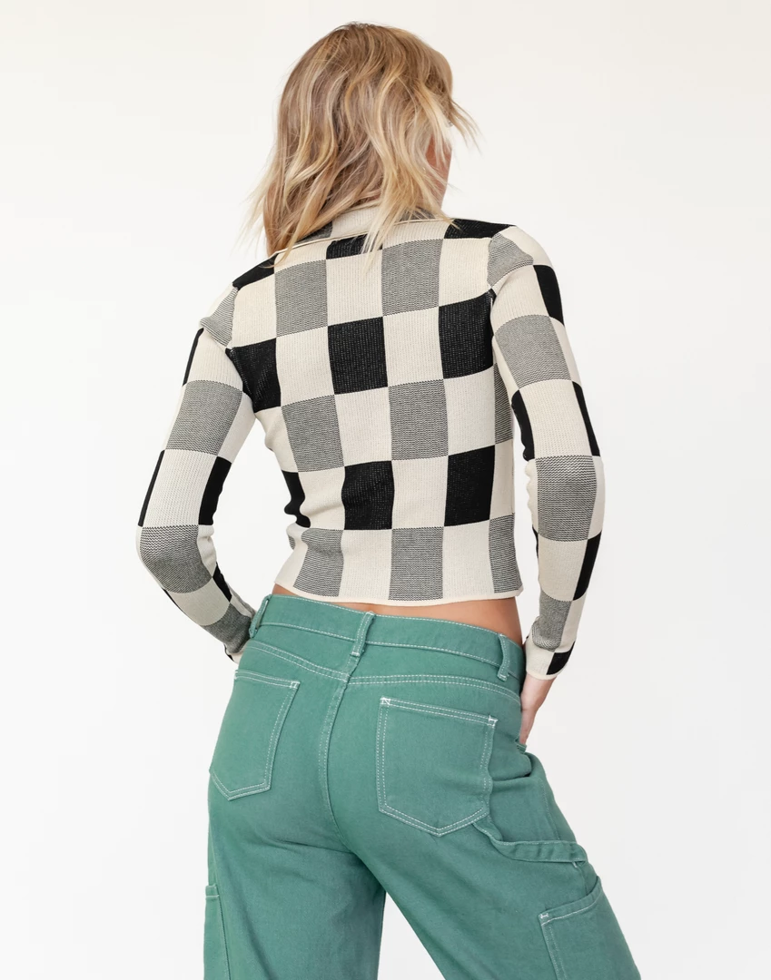 SKU: top-6695342014566 Categories: Clothing, Edit, Jackets + Outerwear, Knitwear, Tops, Winter Warmers Tags: Check, Check print, Cream, Knit pattern, Knitwear, NA15FEB22, New arrivals, Top
