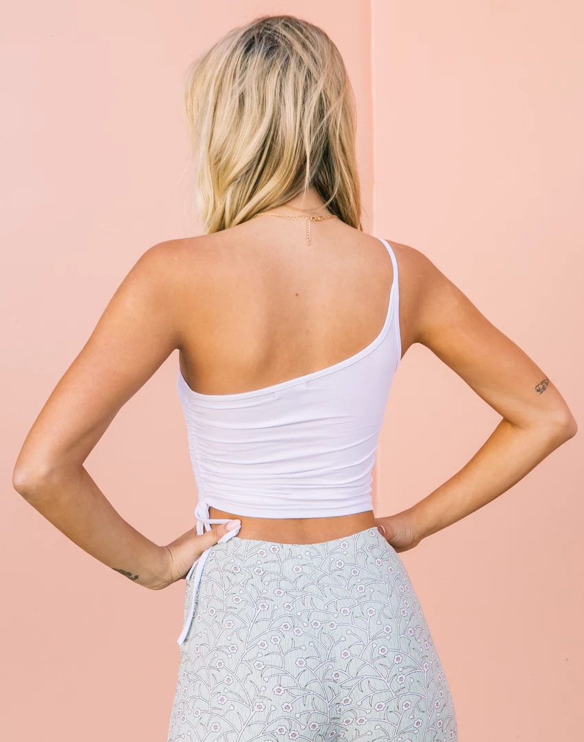White one-shoulder crop top