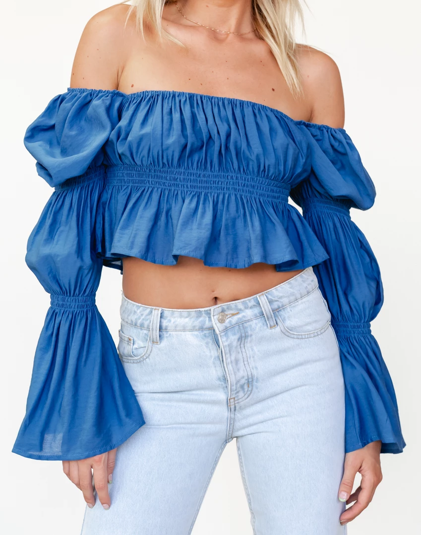 SKU: top-6695342473318 Categories: Bold in colour, Clothing, Edit, Shirts + Blouses, Summer Edit, Tops, Winter Warmers Tags: Blue blouse, Internationalsizeguide, Long Sleeve, Loose top, NA15FEB22, New arrivals, Newbarcode22, Wide neck