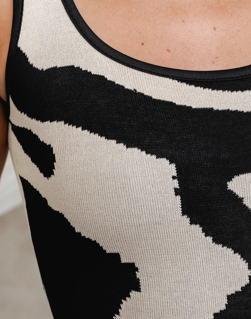 Black and cream print mini dress