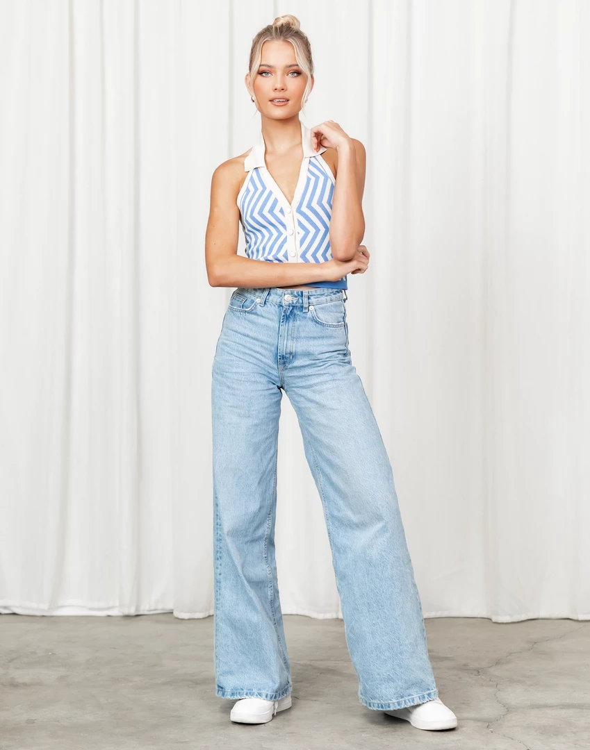Blue and cream pattern top