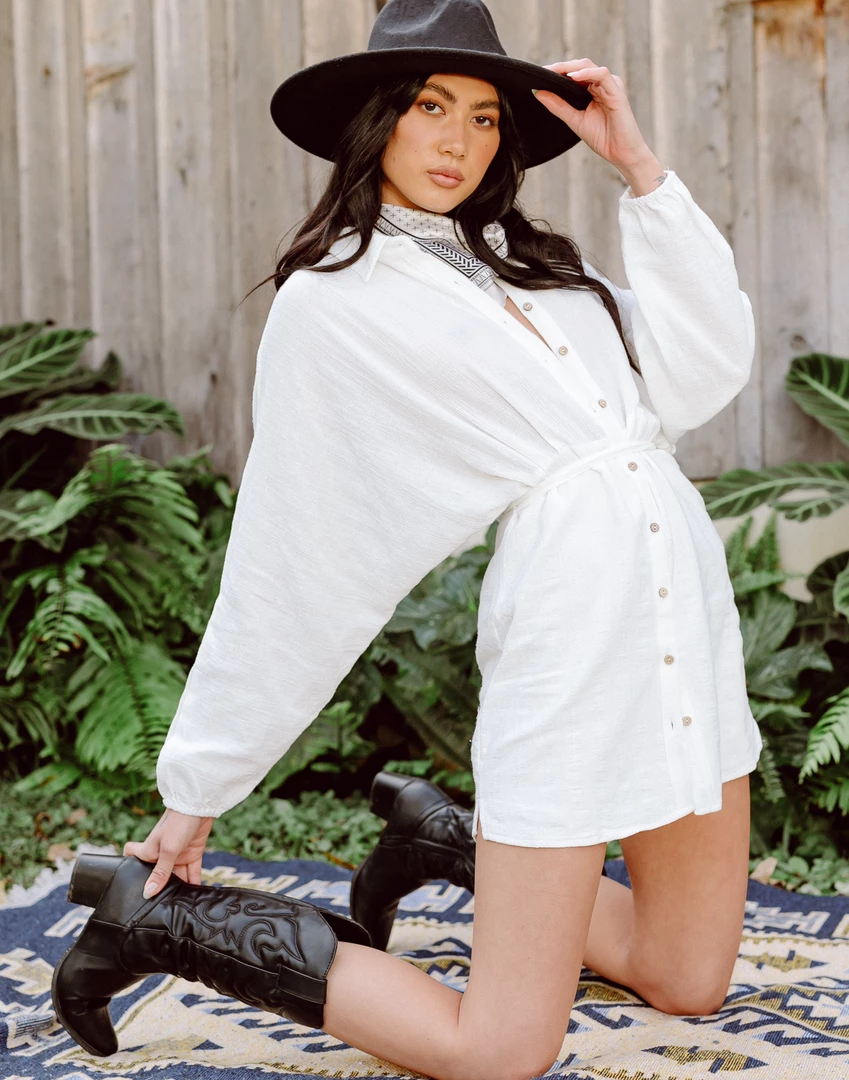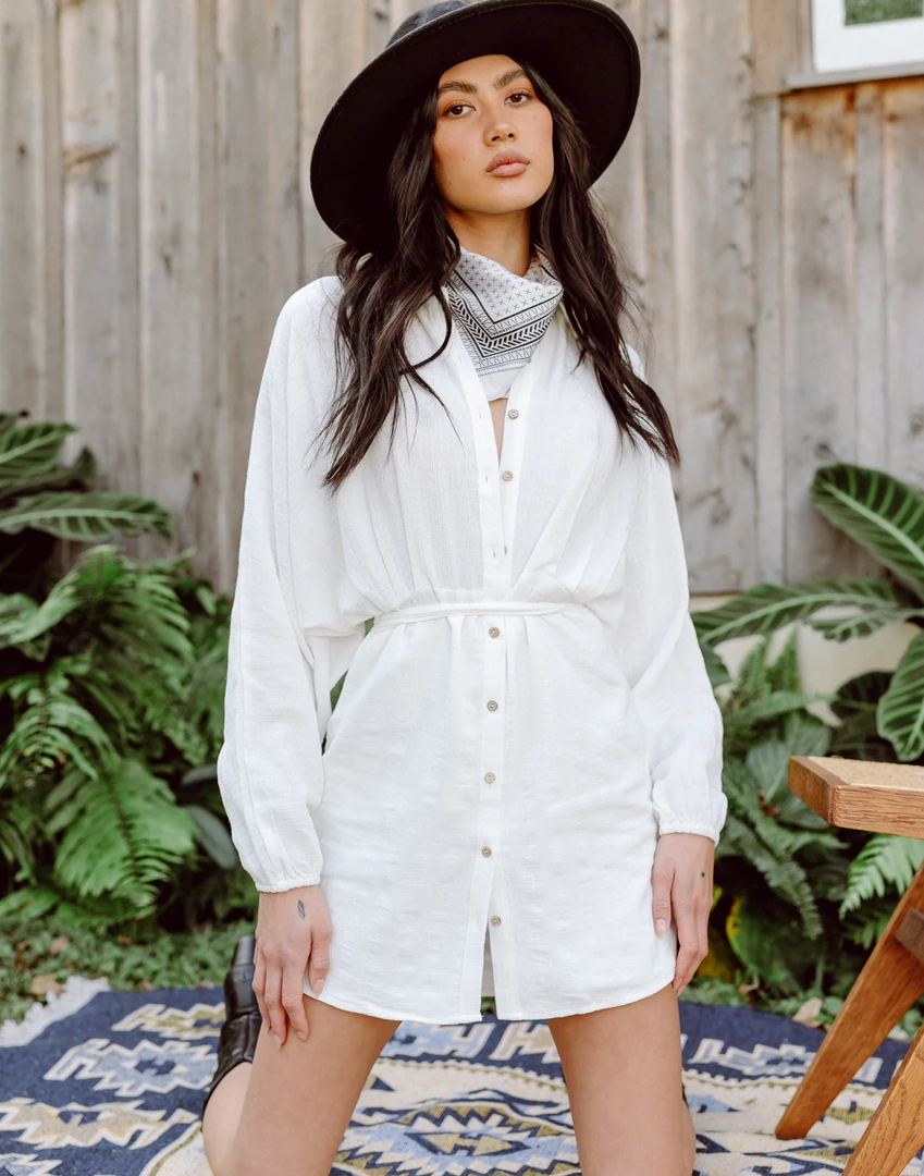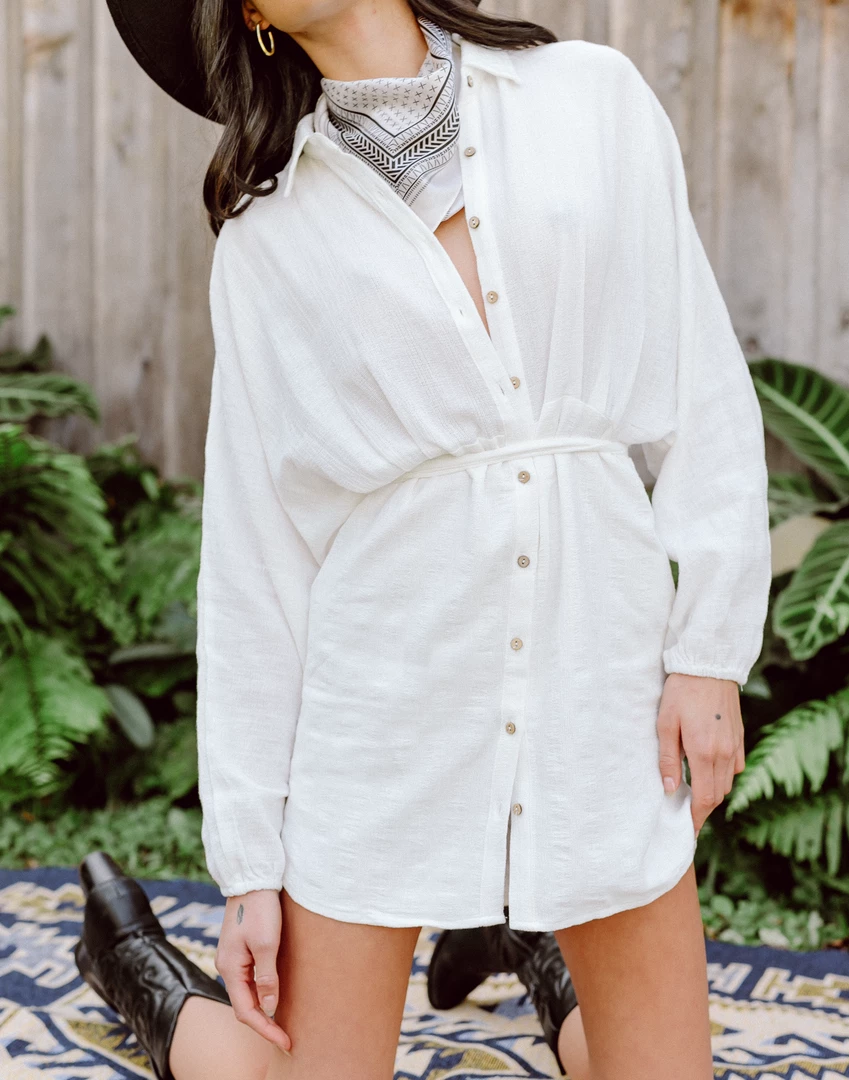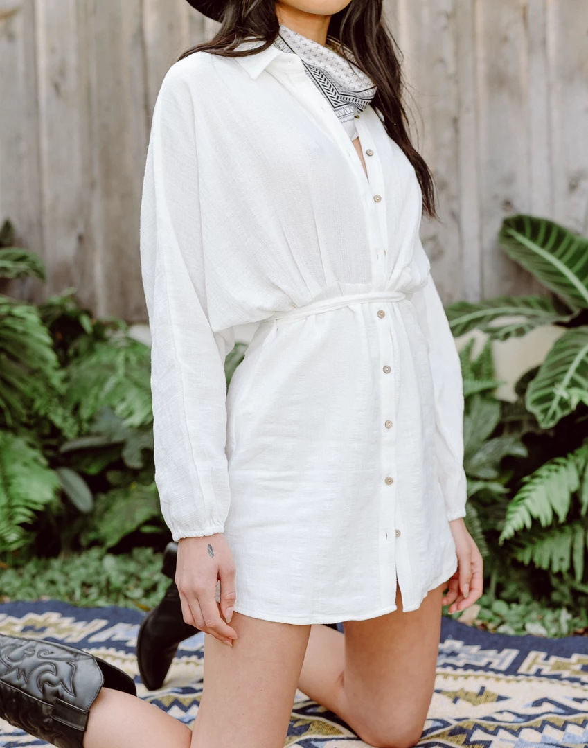 White button-up mini dress