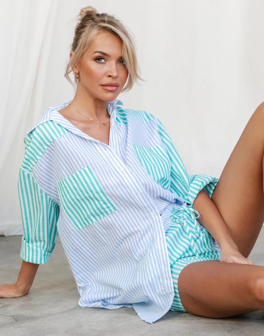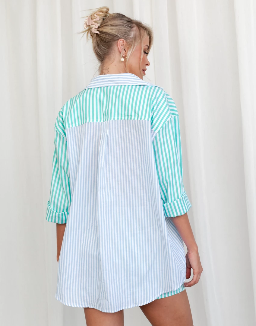 Blue and mint striped shirt