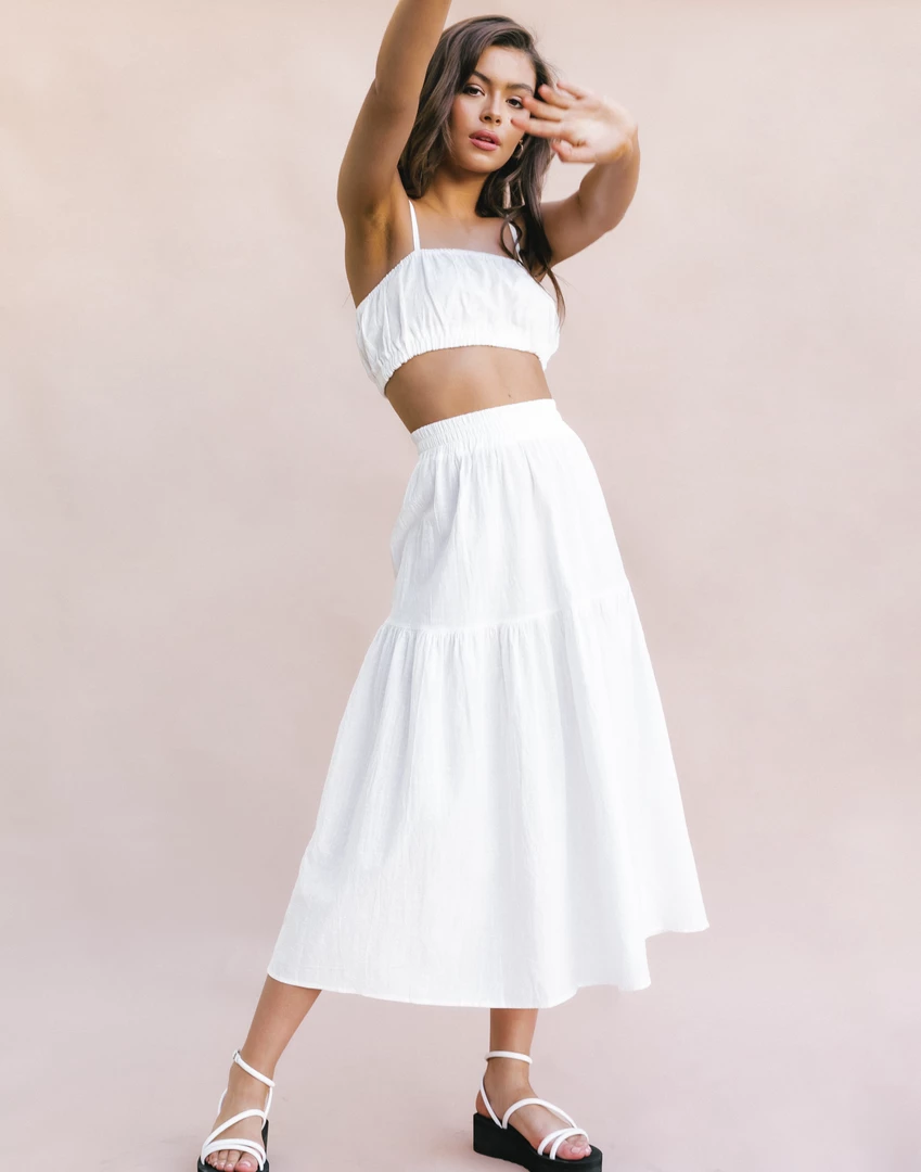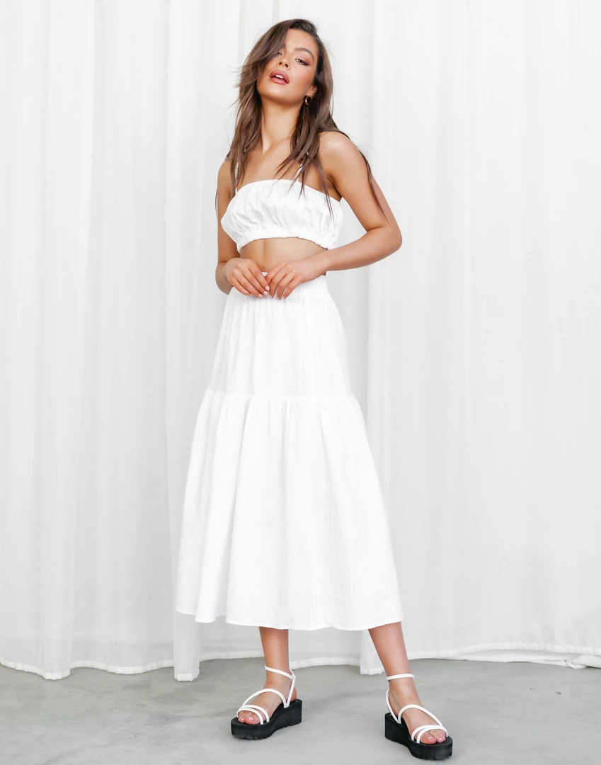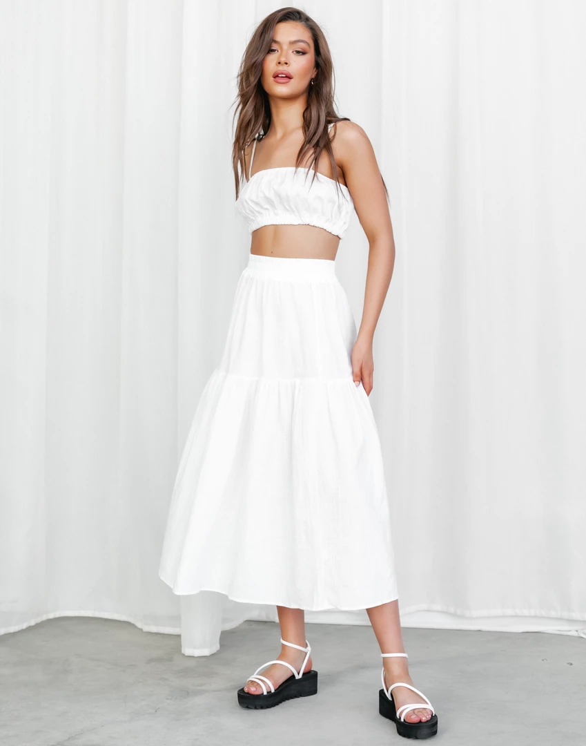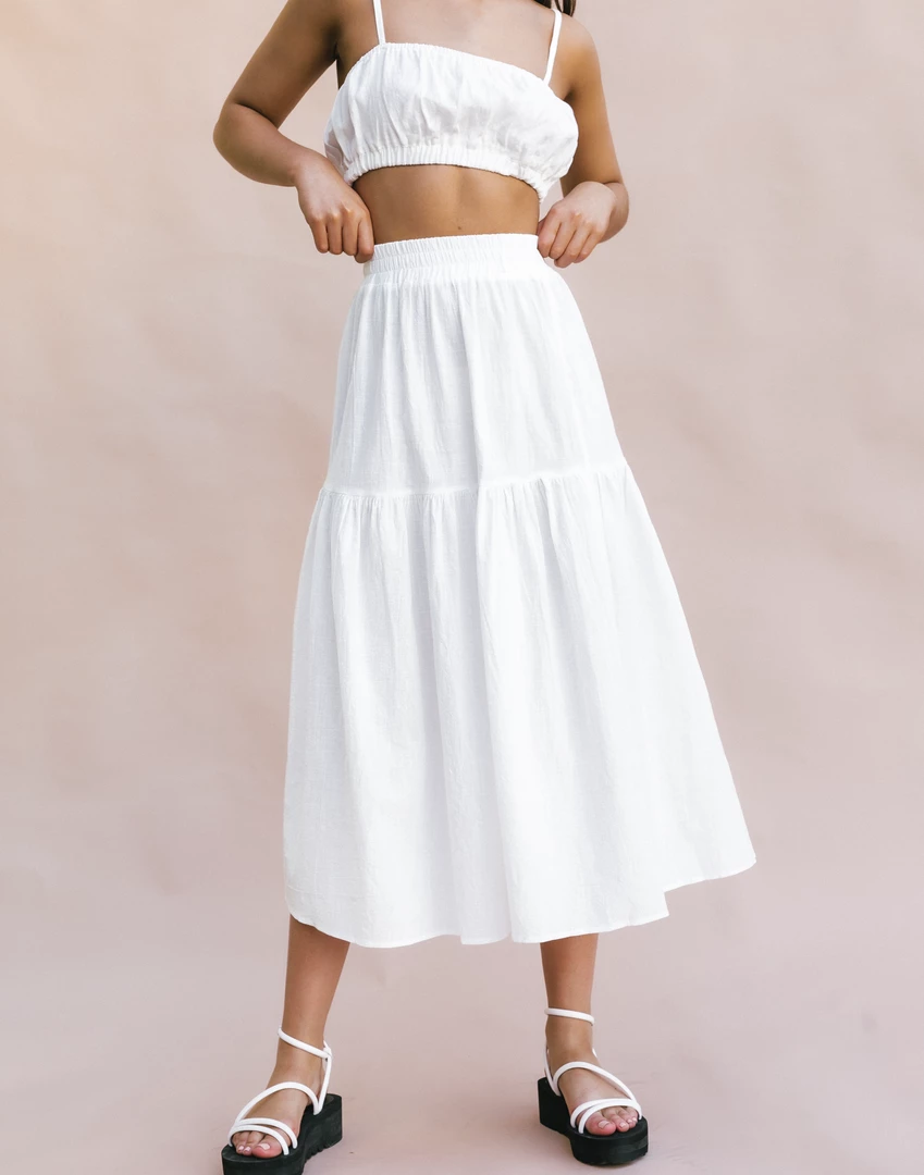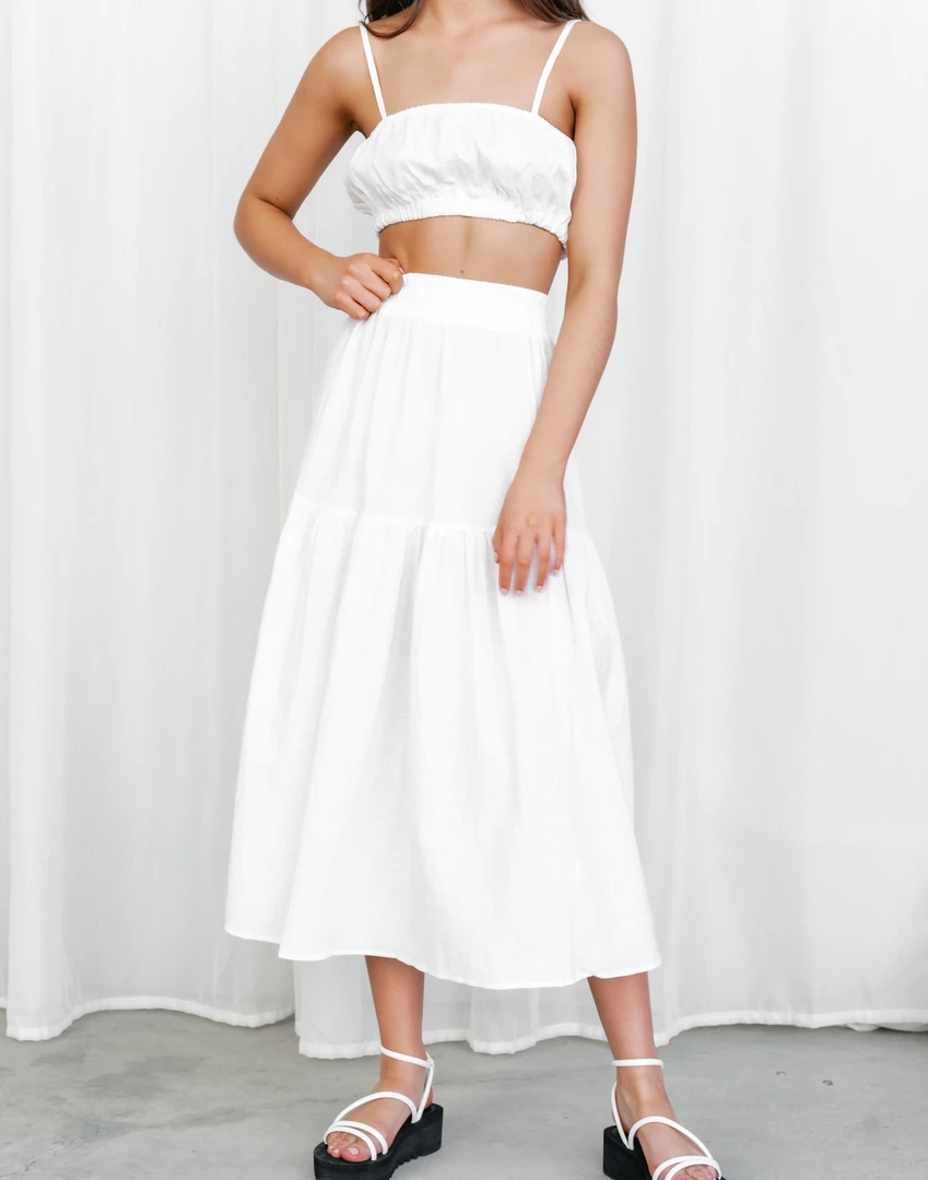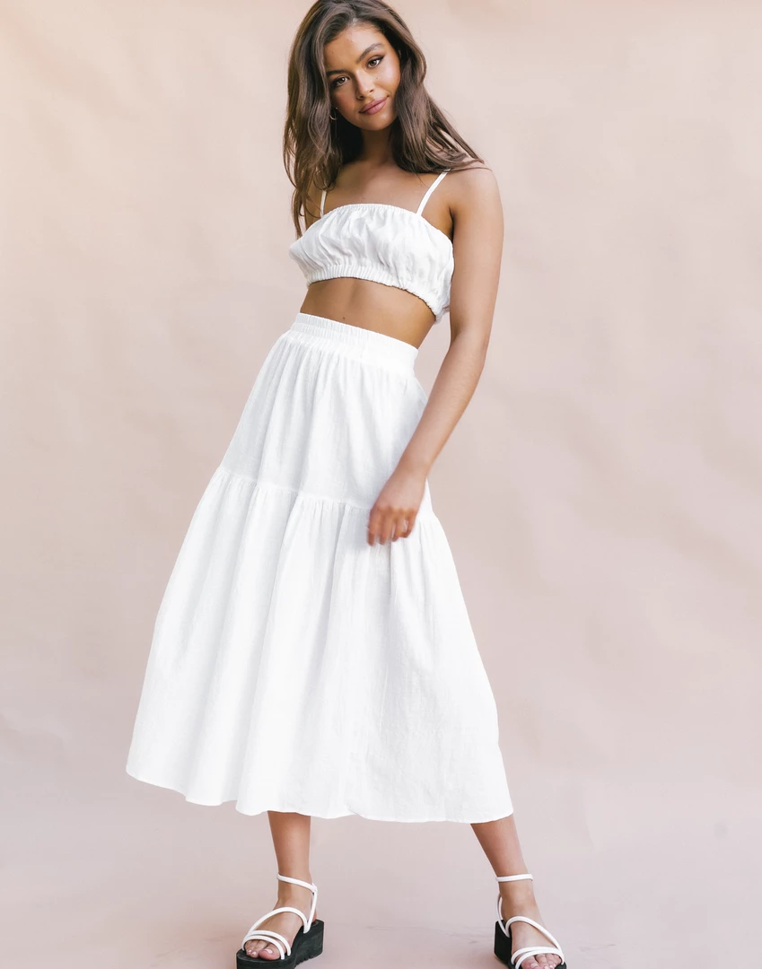 White linen midi skirt
